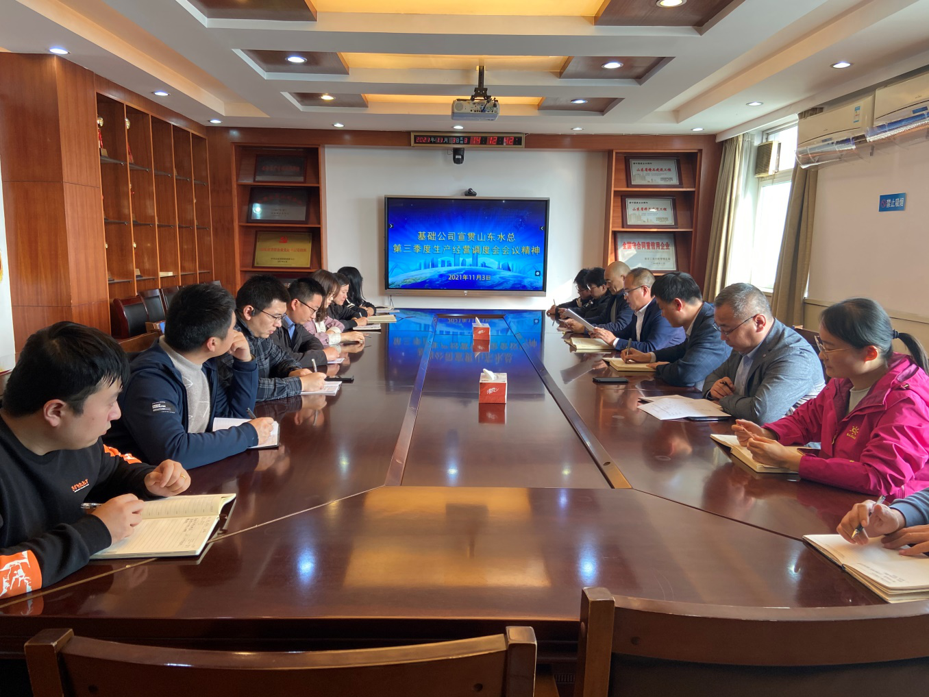 11月3日下午,基础工程有限星空官方web版入口-星空(中国) 在七楼会议室召开第三季度生产经营调度会议暨宣贯会议。总经理朱兆同主持会议并讲话,星空官方web版入口-星空(中国) 驻济人员参加了会议。