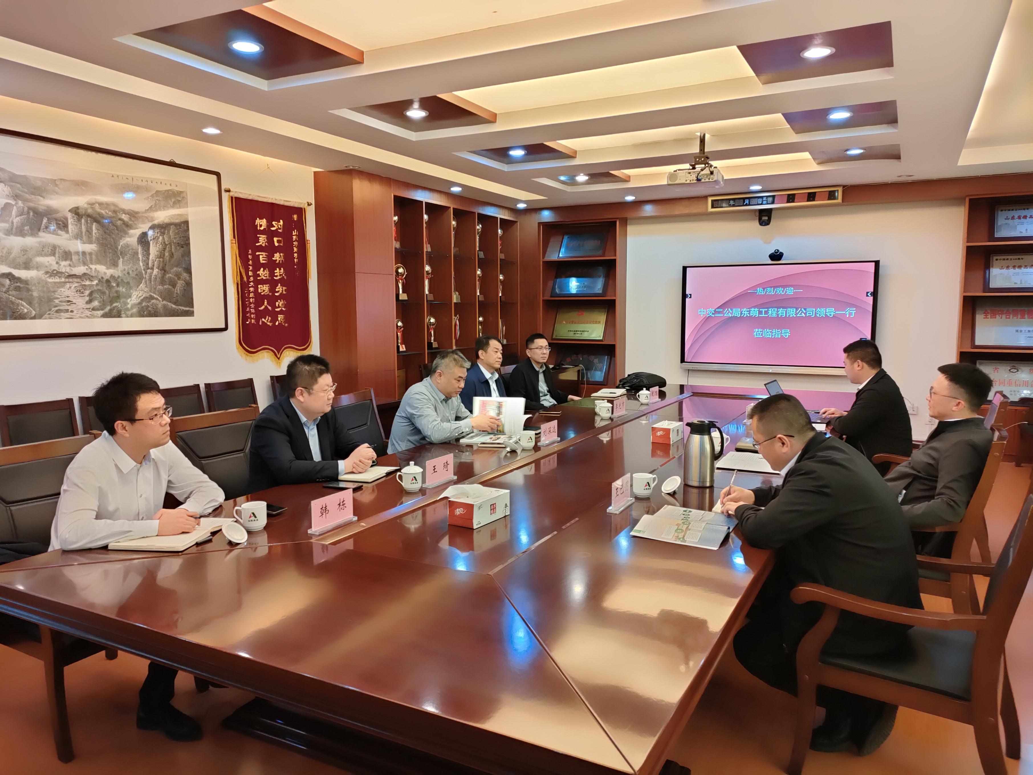3月20日下午,中交二公局东萌工程有限星空官方web版入口-星空(中国) 董事长周军、副总经济师王巴图、经营开发部程勇一行到我星空官方web版入口-星空(中国) 走访交流。星空官方web版入口-星空(中国) 党委书记、董事长刘深远,党委委员、副总经理李光市出席会议,投资经营部及第七分星空官方web版入口-星空(中国) 相关人员陪同交流。