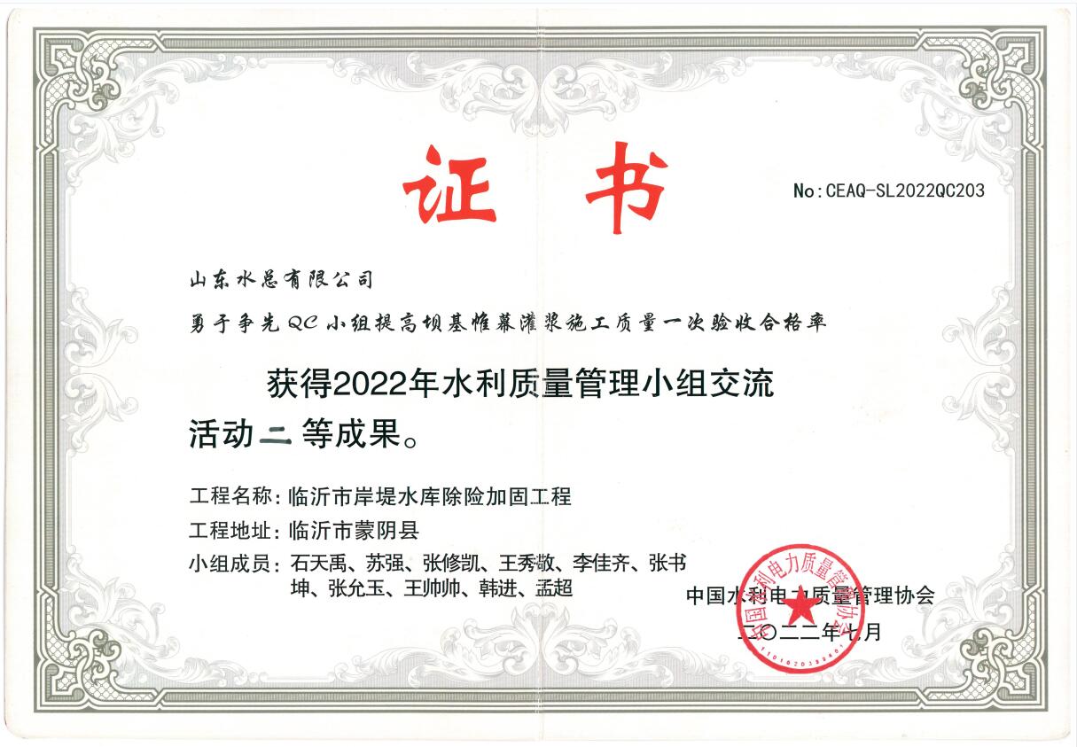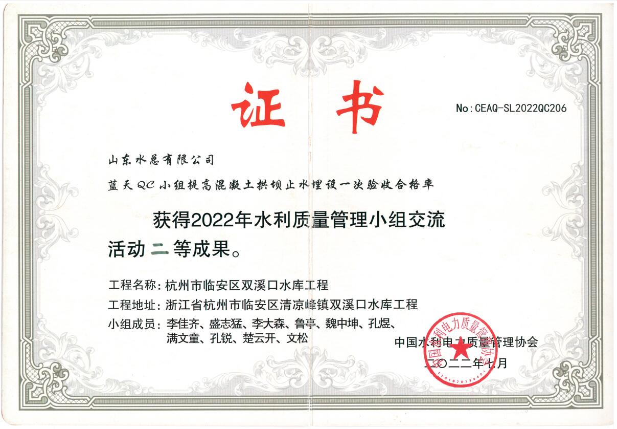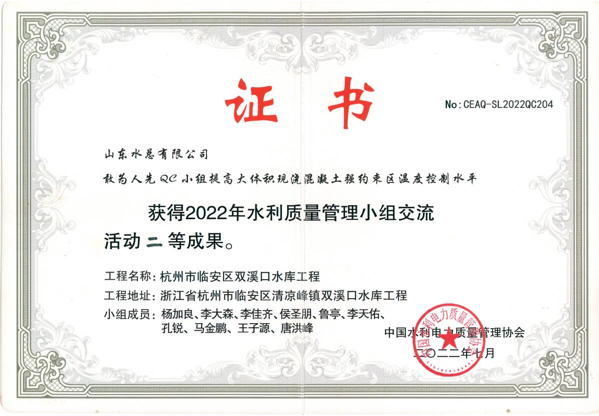 近日,中国水利电力质量管理协会2022年水利质量管理小组交流活动结果与获奖名单揭晓,星空官方web版入口-星空(中国) 申报的《提高钢坝闸闸墙外观质量一次验收合格率》获得一等成果、《提高混凝土拱坝止水埋设一次验收合格率》《提高大体积现浇混凝土强约束区温度控制水平》《提高坝基帷幕灌浆施工质量一次验收合格率》3项成果获得二等成果。