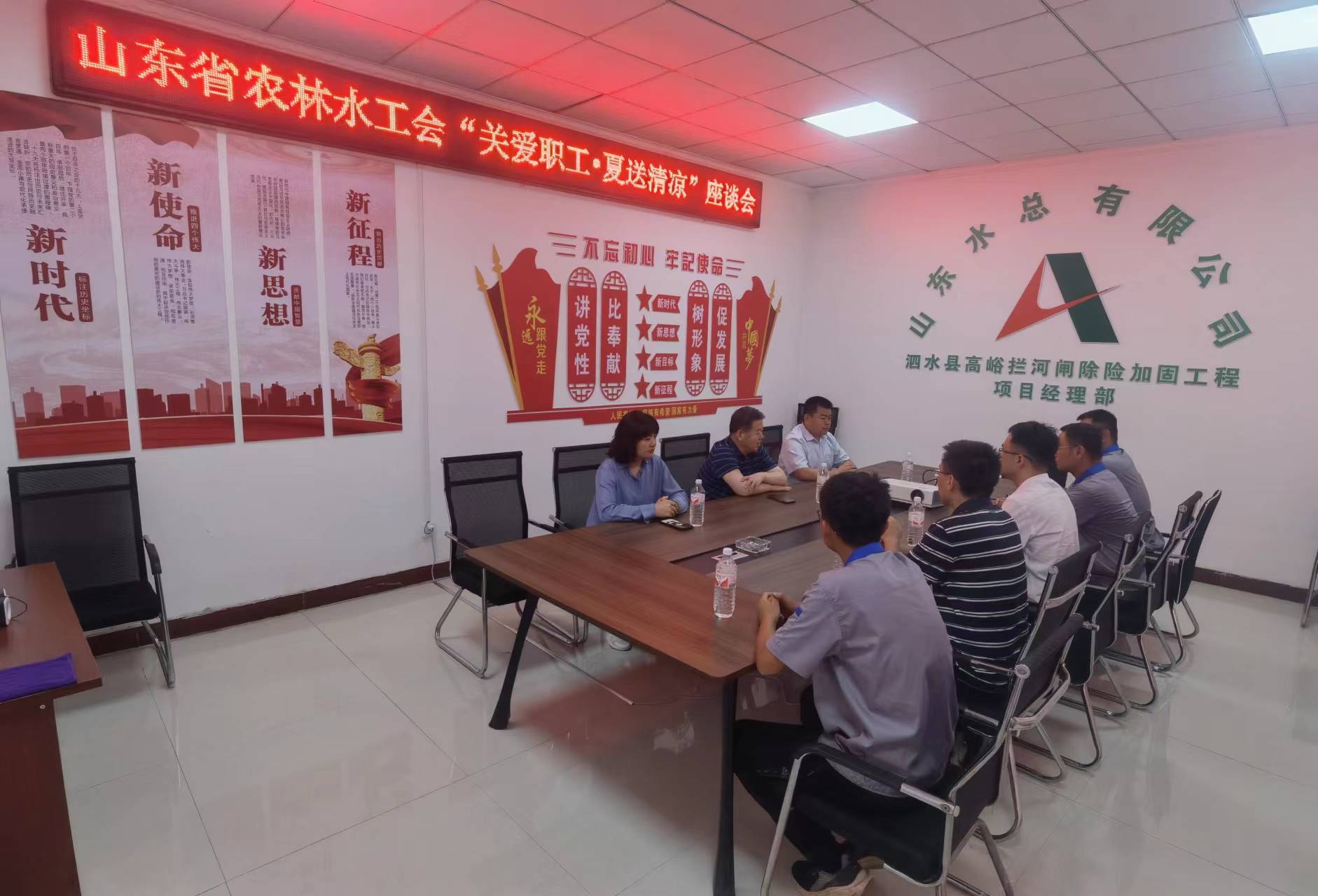 7月19日,山东省农林水工会主席张志刚一行到星空官方web版入口-星空(中国) 泗水县高峪拦河闸除险加固工程开展“夏送清凉”慰问活动。星空官方web版入口-星空(中国) 党委副书记、工会主席周少林,党委组织部部长孙凌,第七分星空官方web版入口-星空(中国) 总经理韩栋,副总经理常征陪同参加慰问。