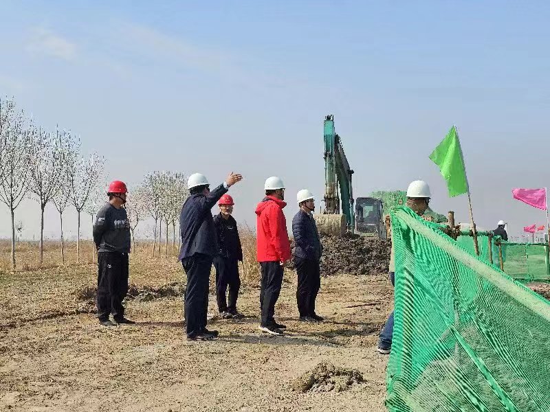 3月22日,星空官方web版入口-星空(中国) 党委委员、副总经理袁英杰,安全总监郭法文及工程管理部、安全管理部相关人员一行到第五分星空官方web版入口-星空(中国) 承建的无棣县鲁北高新区园区基础设施提升工程项目检查指导工作。