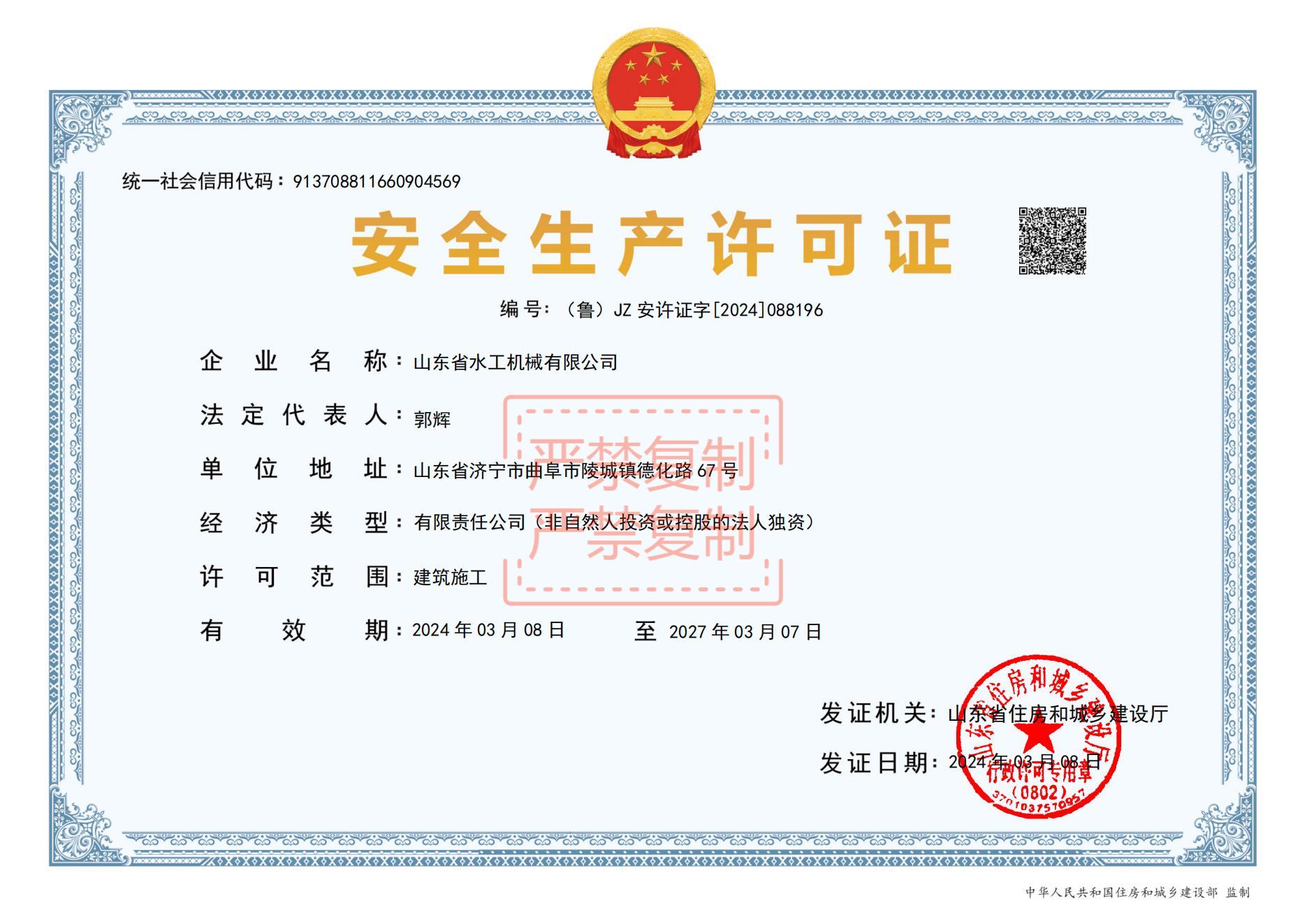 一季度,水工机械星空官方web版入口-星空(中国) 制定《山东省水工机械有限星空官方web版入口-星空(中国) 重要事项督办管理办法》对星空官方web版入口-星空(中国) 年度及日常各项重要事项进行督办并及时调整工作计划和措施,确保星空官方web版入口-星空(中国) 各项工作稳步推进。2023年12月底取得钢结构工程专业承包贰级资质,2024年3月7日取得安全生产许可证,为星空官方web版入口-星空(中国) 进一步拓展业务,持续保障安全生产打下基础。