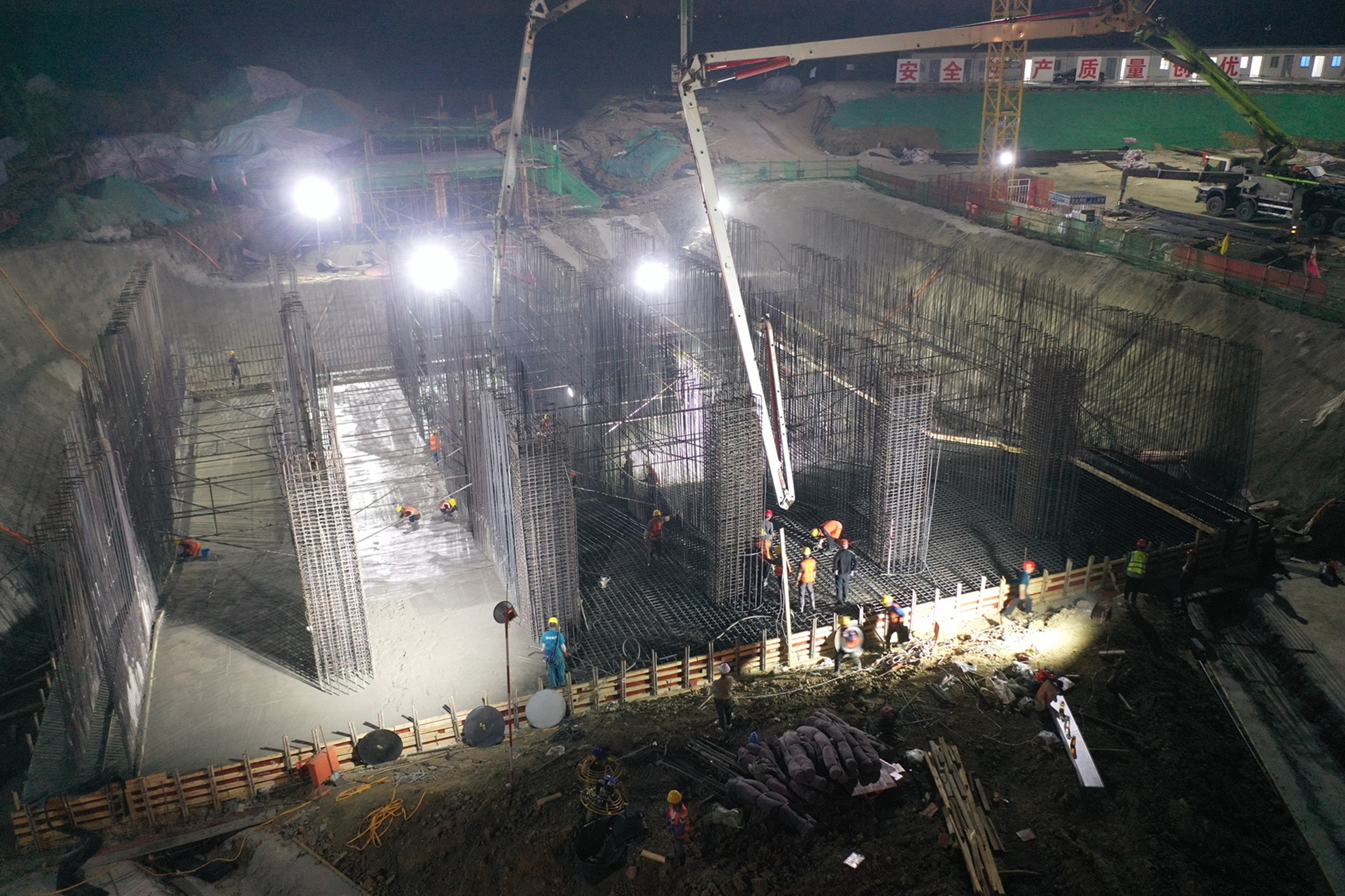 凝心聚力多创效,振奋精神勇担当—七星空官方web版入口-星空(中国) 承建的济宁石佛泵站项目顺利完成泵室底板浇筑