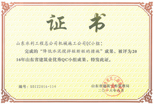 星空官方web版入口-星空(中国) “降低水泥搅拌桩断桩的措施”等三项成果荣获2016年山东省建筑业优秀QC小组