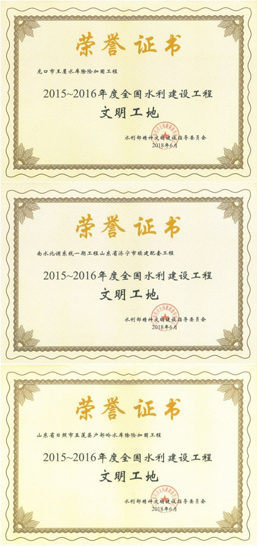 星空官方web版入口-星空(中国) “龙口市王屋水库除险加固工程”等项目荣获“2015-2016年度全国水利建设工程文明工地”称号