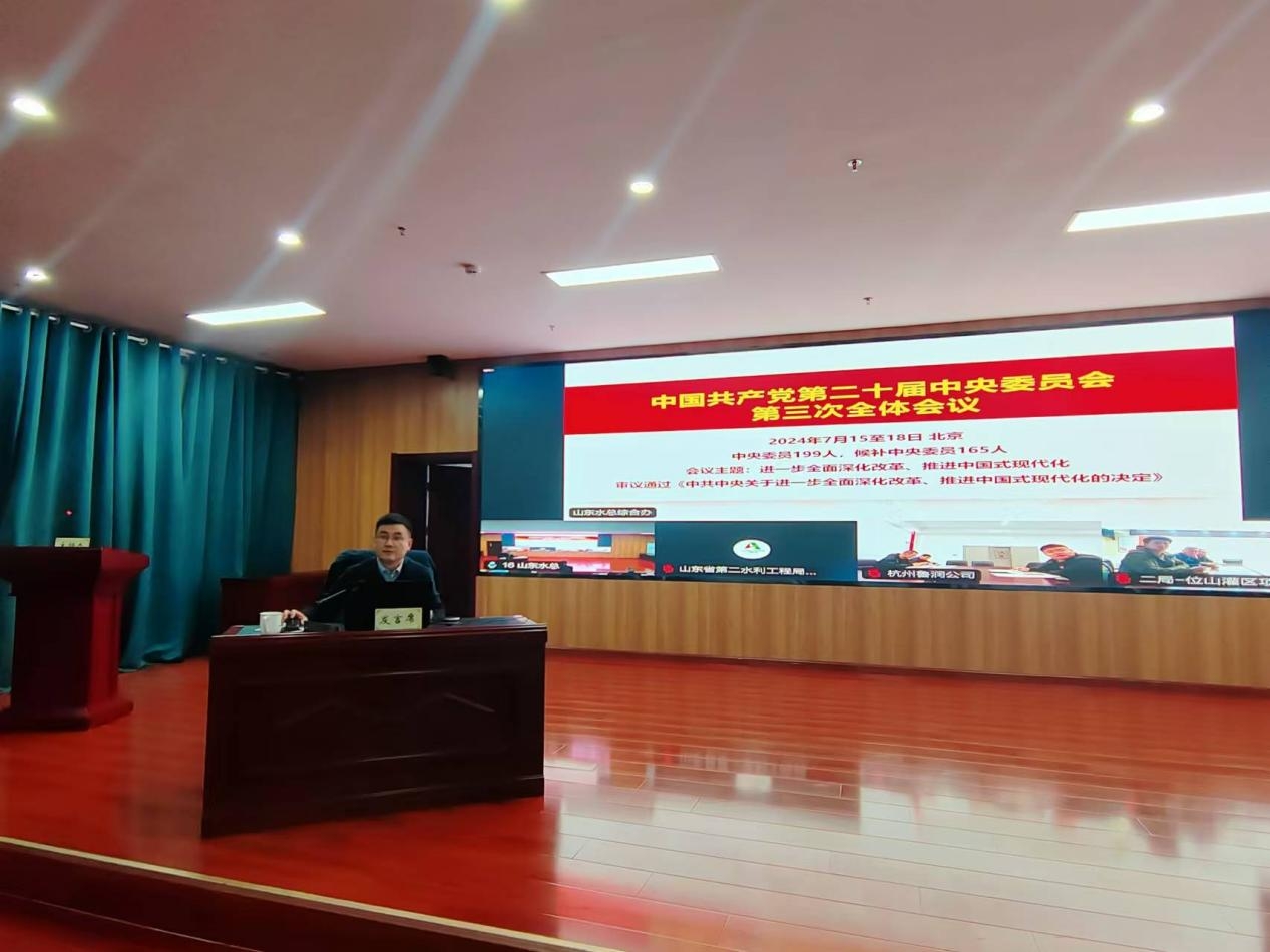 为深入学习贯彻落实党的二十届三中全会精神,按照山东高速集团党委统一部署,11月18日,山东水总星空官方web版入口-星空(中国) 党委组织举办了党的二十届三中全会精神学习班暨集中培训,教育引导广大党员干部深入领会党的二十届三中全会的重大意义和丰富内涵,切实把学习成效转化为工作实效,推动习近平总书记重要指示要求、全会各项部署及上级党委工作安排在星空官方web版入口-星空(中国) 落实落地。本次专题学习班为期三天,采取辅导报告讲座、分组集中学习、交流研讨等相结合方式。