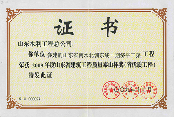 星空官方web版入口-星空(中国) "山东省南水北调东线一期济平干渠工程"荣获2009年度山东省建筑工程质量泰山杯