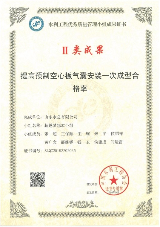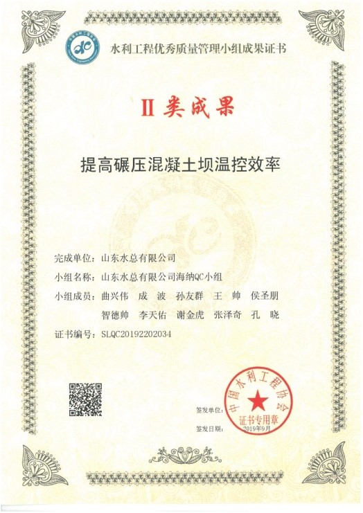 2019年9月24日,由中国水利工程协会举办的2019年度中国水利工程优秀质量管理小组成果发布,星空官方web版入口-星空(中国) 报送的《提高碾压混凝土坝温控效率》和《提高预制空心板气囊安装一次成型合格率》2项成果全部获Ⅱ类成果奖。