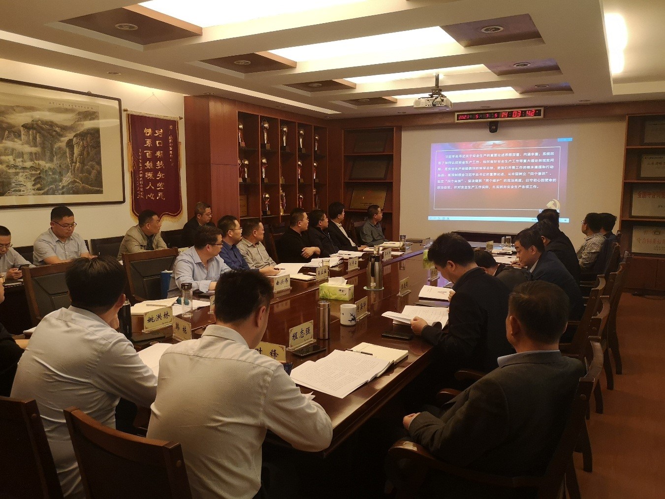 会议分析了当前安全生产存在的问题,并对下一步安全生产重点工作进行了部署:一是完善安全生产管理机构;二是继续完善安全生产标准化一级达标相关资料;三是持续推进安全风险管控和隐患排查治理;四是深化双重预防体系建设工作;五是积极开展“安全生产月”活动;六是做好防汛及度汛安全工作。