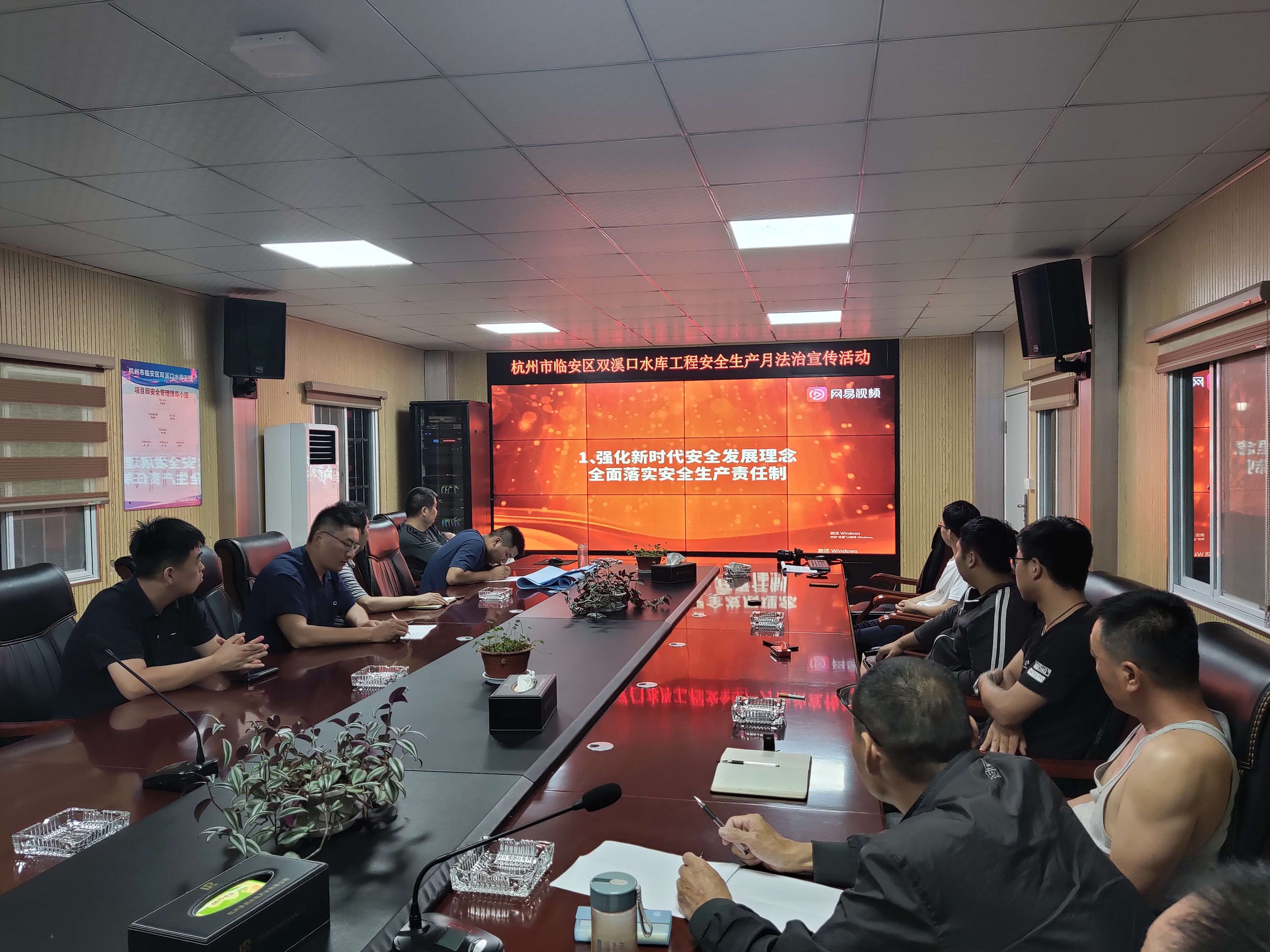 杭州市双溪口水库工程组织观看工程宣传片暨开展安全生产月宣传活动