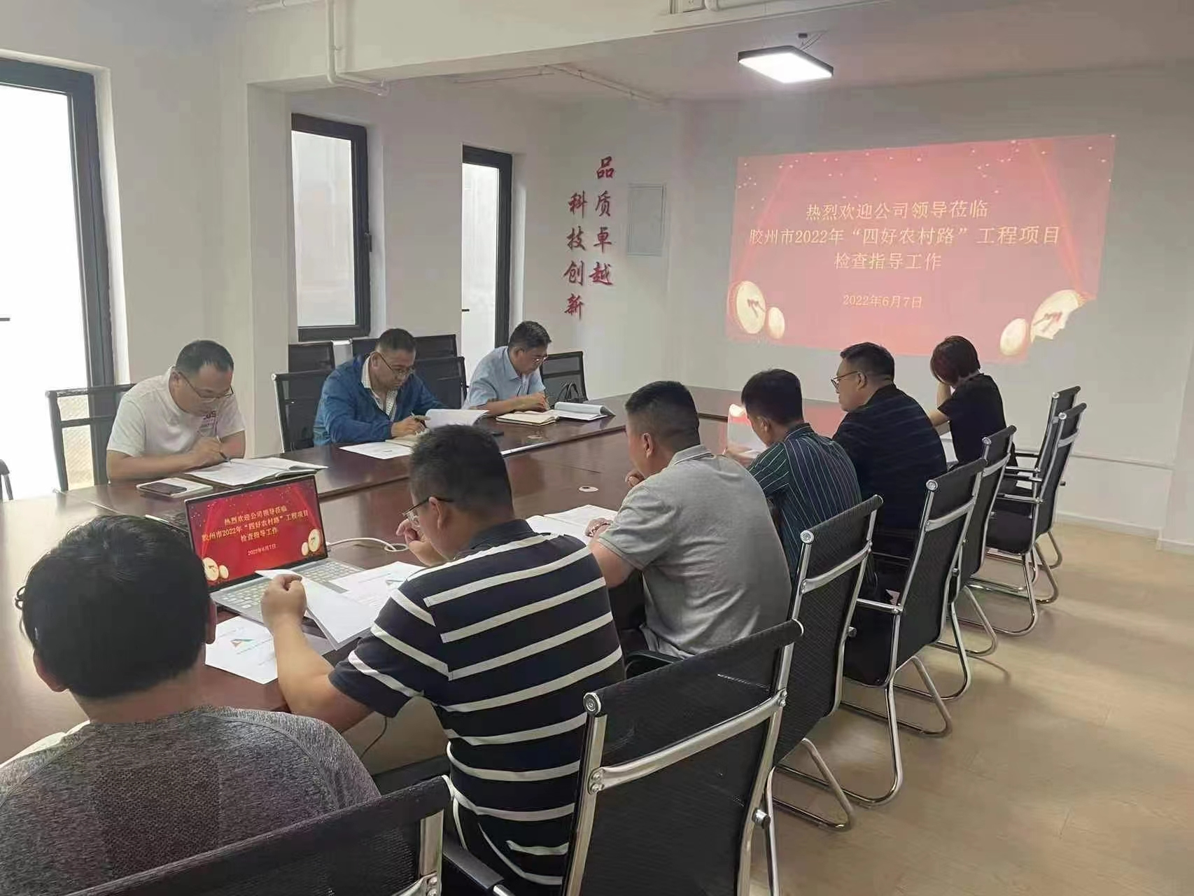 6月7日,星空官方web版入口-星空(中国) 安全总监郭法文、安全管理部部长向建等一行到胶州市2022年“四好农村路”工程项目开展安全检查工作,二局有限星空官方web版入口-星空(中国) 副总经理、安全总监刘波,副总经理李灏陪同检查。