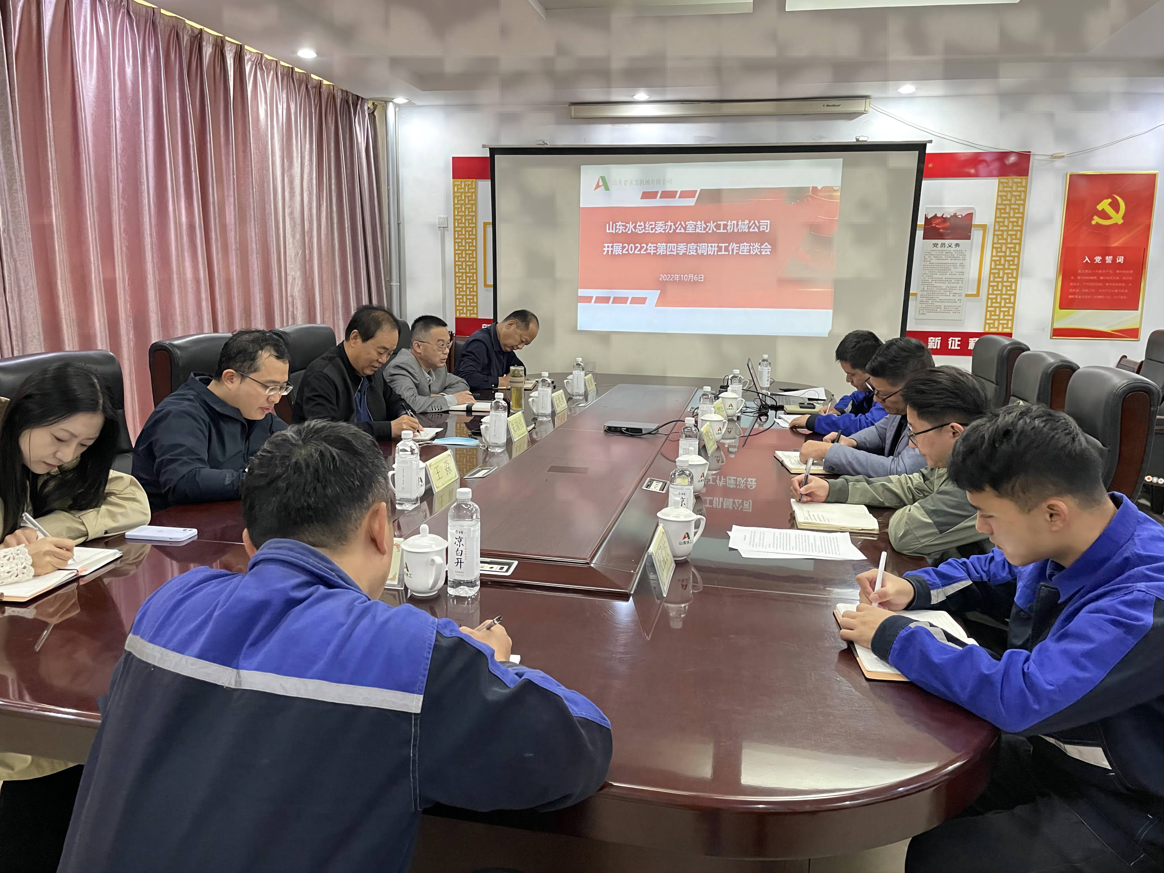 10月5日,调研组首先在水工机械星空官方web版入口-星空(中国) 三楼召开座谈会,听取水工机械星空官方web版入口-星空(中国) 机料采购、废料处理、成本控制等情况汇报,以及星空官方web版入口-星空(中国) 在各项工作中遇到的难题及下一步工作措施,对有关问题给予现场指导。调研组指出,星空官方web版入口-星空(中国) 目前各项任务还十分艰巨,面对错综复杂的形势和艰巨繁重任务,要深入贯彻上级党委的总体要求,坚决落实集团星空官方web版入口-星空(中国) 的各项决策部署,动员全体干部职工,积极应对安全环保、生产经营、产品质量“三重”大战大考,坚定信心、攻坚克难、苦干实干。随后,调研组一行实地查看生产车间,了解项目进展,认真检查现场安全生产落实情况,听取职工诉求和意见建议。