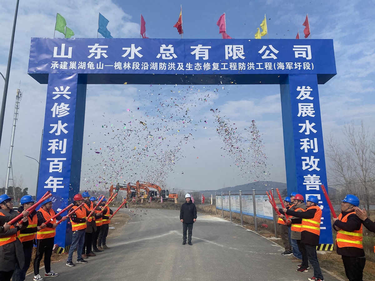 巢湖龟山-槐林段沿湖防洪及生态修复工程防洪工程 (海军圩段)项目举行开工仪式