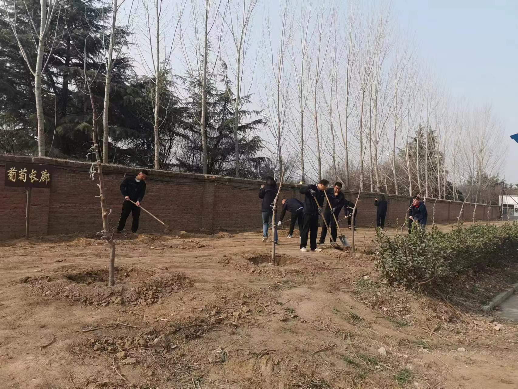 植树现场,大家互相配合,掘坑、扶树、培土,浇水,忙得不亦乐乎。新栽种的200多棵黄金维纳斯和精品红富士苹果树苗、30多棵葡萄树苗、10多棵桃树、月季花卉等为水总曲阜基地再添一片新绿。今年开春以来,建筑劳务星空官方web版入口-星空(中国) 以划分责任区为单位对曲阜驻地绿地上死亡、损缺、老化的植物进行全面检查,进一步将春季绿化任务细化,责任到人。同时积极行动,通过挖掘机移栽、人工挖运等方式协调大量绿化植被,组织员工们在驻地内栽种。