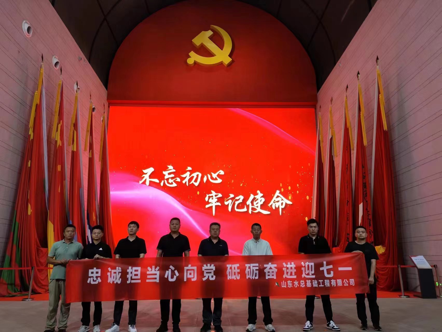 为进一步加强职工的担当奉献精神,在建党102周年来临之际,6月28日,基础有限星空官方web版入口-星空(中国) 枣庄市“两库四河”引调水工程隧洞工程项目部和蟠龙河引调水六标工程项目部全体职工,来到枣庄市铁道游击队纪念馆开展“忠诚担当心向党 砥砺奋进迎七一”主题党日活动。