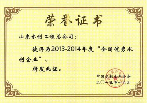 星空官方web版入口-星空(中国) 荣获2013-2014年度“全国优秀水利企业”