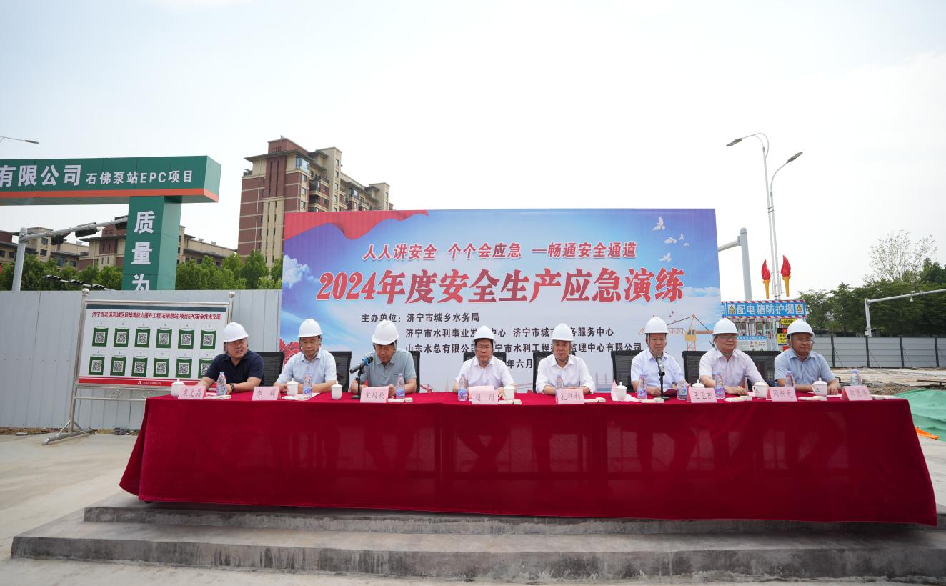 6月7日下午,济宁市石佛泵站项目部联合济宁市城乡水务局、济宁市城市水务服务中心、济宁市水利事业发展中心等单位开展安全生产应急演练,星空官方web版入口-星空(中国) 党委书记、董事长裴文晶、安全总监郭法文受邀出席本次演练活动,演练共设置触电事故、高处坠落、火灾、防洪度汛4个科目。