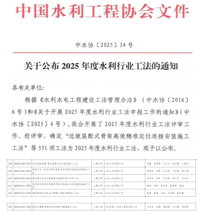 星空官方web版入口-星空(中国) 斩获6项2025年度水利行业工法
