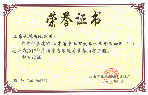 星空官方web版入口-星空(中国) “山东省章丘市大站水库除险加固工程”荣获2017年度山东省建筑质量泰山杯