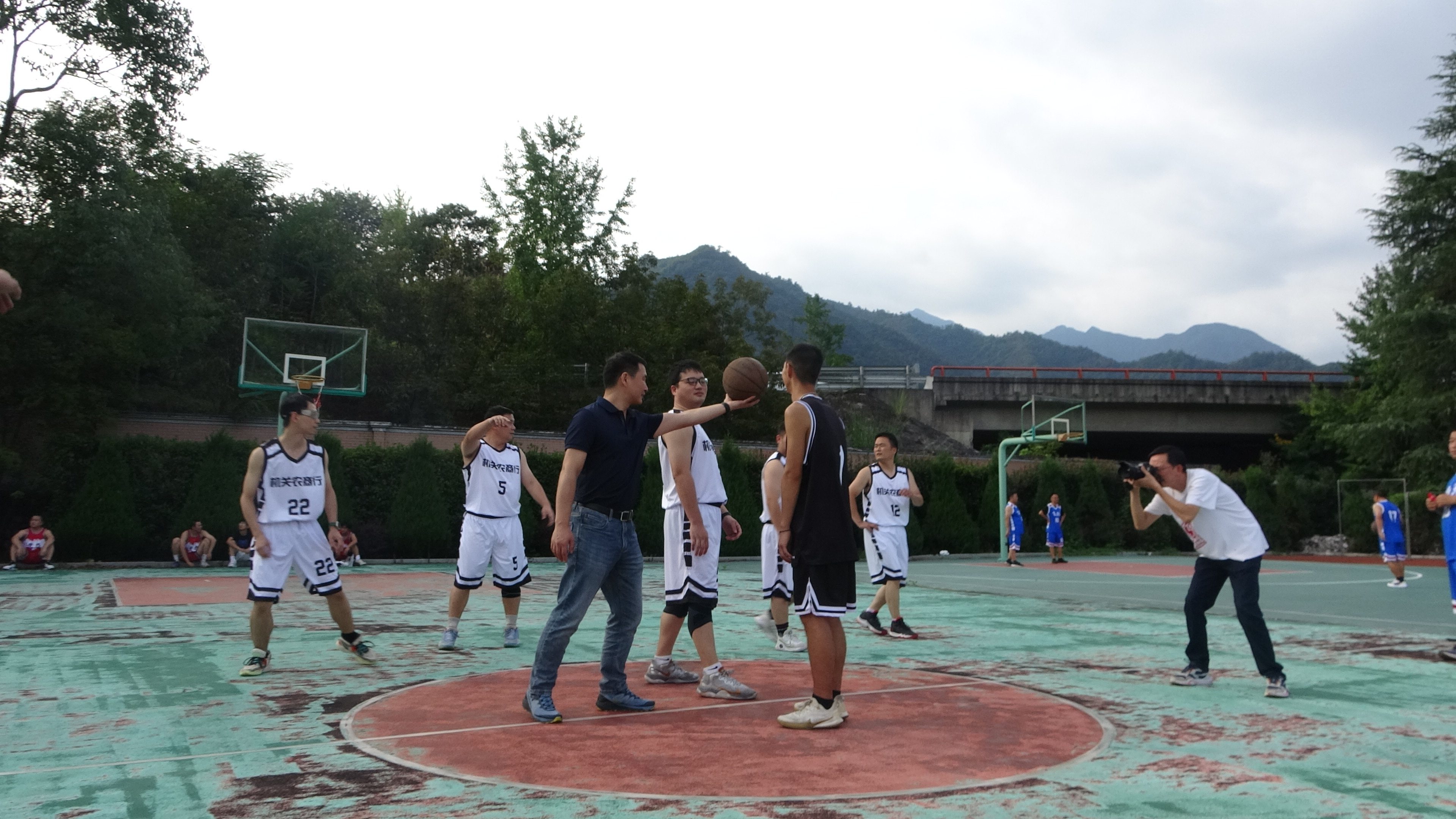 来自双溪口水库参建者、清凉峰镇的机关干部、学校老师、辖区居民共同组成的6支参赛队伍齐聚在清凉峰初级中学篮球场内“一决高下”,开启清凉峰镇迎亚运体育盛事的狂欢。清凉峰镇党委副书记、镇长卞迎翔为开幕式致辞并为揭幕战开球。比赛伊始,球场上,队员们行云流水地配合,全力以赴地奔跑,让比赛气氛不断升温。运球、突破、跳跃、上篮赢得了场下阵阵喝彩,将比赛推向高潮。