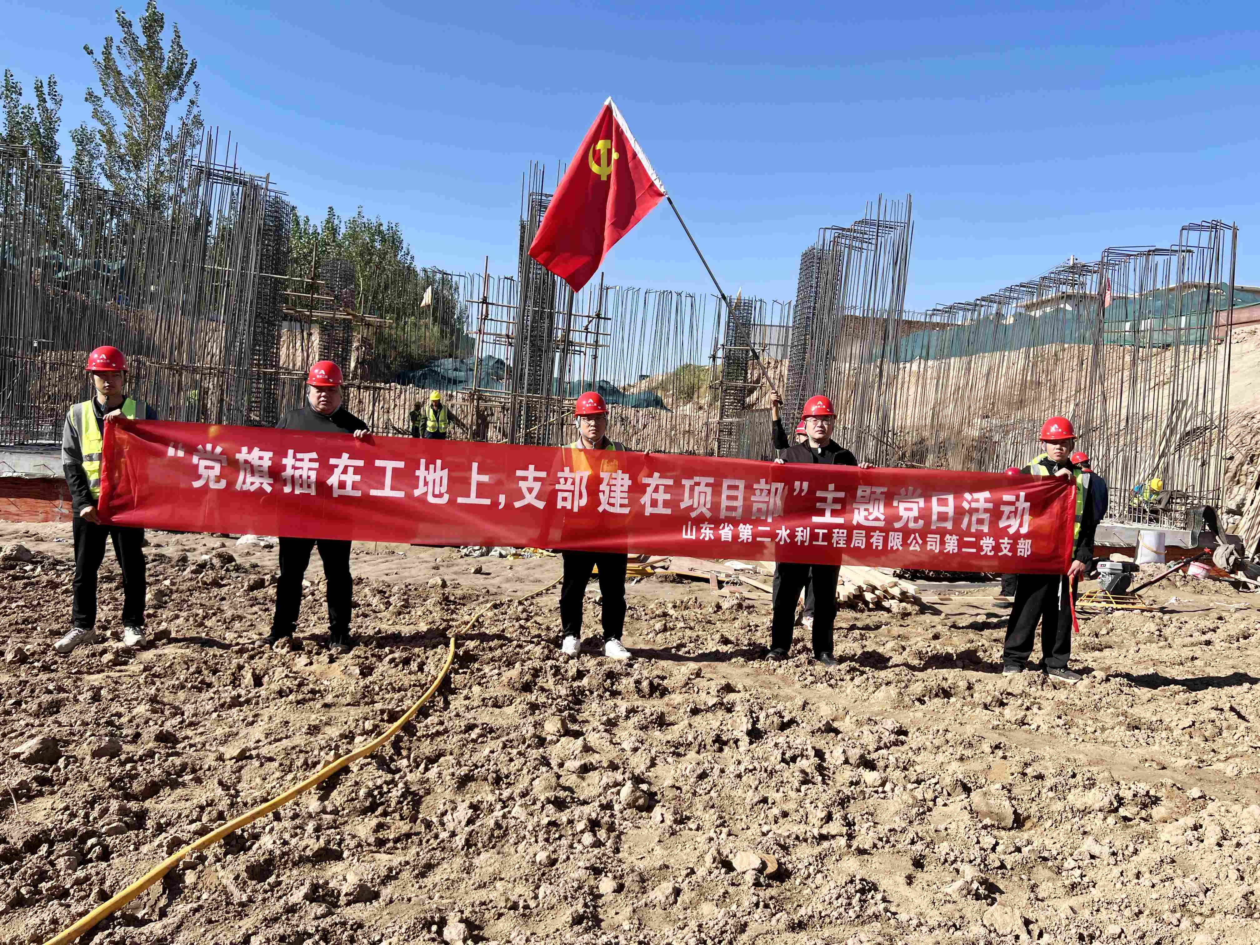 为深入开展“党建进工地”活动,推进党建与业务工作深度融合,近日,二局有限星空官方web版入口-星空(中国) 第二党支部在聊城市位山灌区项目施工现场组织开展“党旗插在工地上,支部建在项目部”主题党日活动。