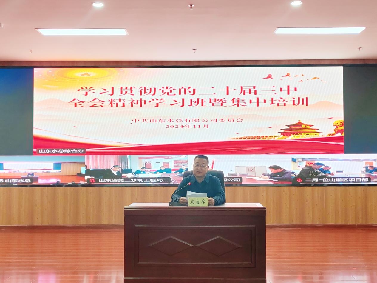 为深入学习贯彻落实党的二十届三中全会精神,按照山东高速集团党委统一部署,11月18日,山东水总星空官方web版入口-星空(中国) 党委组织举办了党的二十届三中全会精神学习班暨集中培训,教育引导广大党员干部深入领会党的二十届三中全会的重大意义和丰富内涵,切实把学习成效转化为工作实效,推动习近平总书记重要指示要求、全会各项部署及上级党委工作安排在星空官方web版入口-星空(中国) 落实落地。本次专题学习班为期三天,采取辅导报告讲座、分组集中学习、交流研讨等相结合方式。